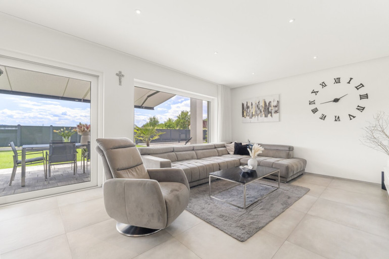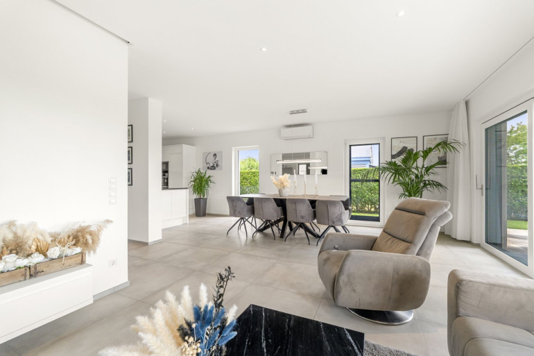 Auf einer großzügigen Wohnfläche von ca. 148m2 erwartet Sie ein offenes Raumkonzept mit Lichtdurchfluteten Wohnbereichen.