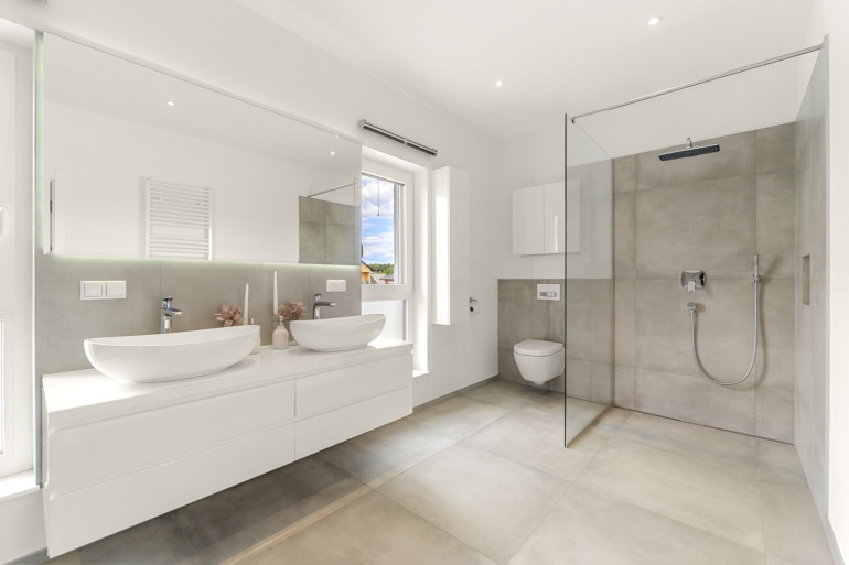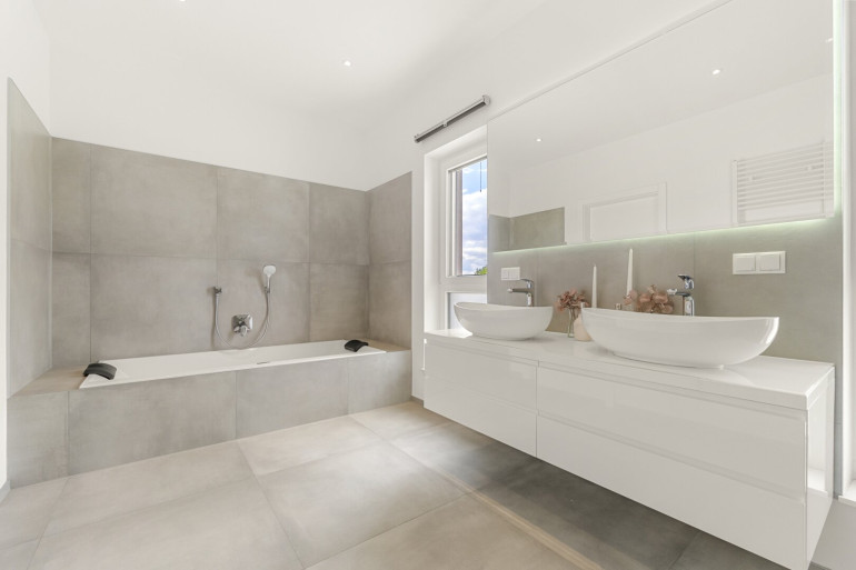 OG: 3 Schlafzimmer - Badezimmer mit Dusche und Wanne