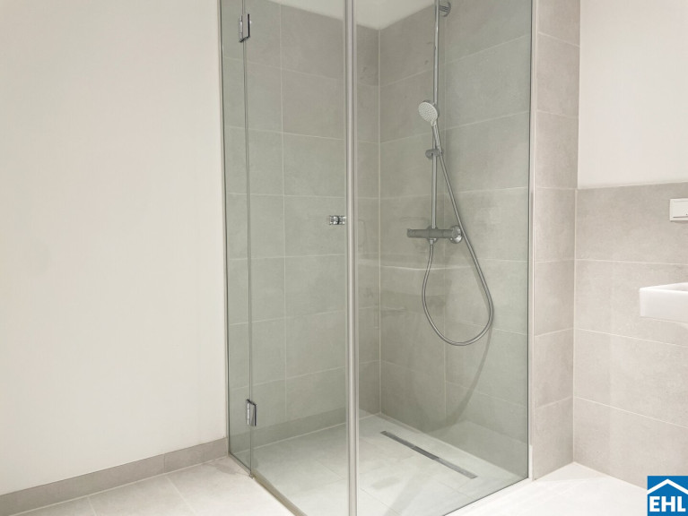 Parkett, Fliesen, Fußbodenheizung, Wohnküche / offene Küche, Personenaufzug, Nordbalkon, Dusche