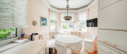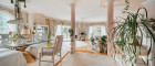 Beim Betreten des rechten Teil des Hauses befindet man sich direkt im Vorraum, diese mit einer großzügigen Garderobe ausgestattet ist. Rechts vom Eingang befindet sich die Toilette. Vom Vorraum erreicht man den Esszimmer, dieses mit einen schönen Esstisch mit eleganten Stühlen ausgestattet ist. Verbunden ist das Esszimmer mit dem großzügigen Wohnzimmer, dieses genug Platz für eine Couchlandschaft und über einen Schwedenofen verfügt. Sowohl vom Esszimmer als auch vom Wohnzimmer gelangt man auf die beeindruckende Terrasse mit Zugang in den gepflegten Garten. Nebenan vom Esszimmer befindet sich die vollausgestattete Küche, diese über viel Stauraum verfügt und mit einer Essecke ausgestattet ist. Die gesamten Räume sind durch ihre großen Fenster und Türen mit viel Tageslicht durchflutet.