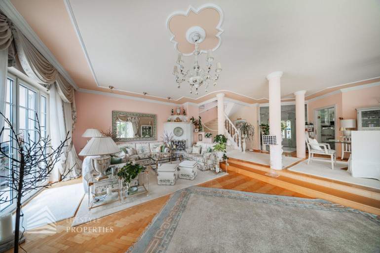 Die Villa hat eine Wohnfläche von ca. 304,20 m² und verfügt über zwei Eingänge, da das Objekt derzeit in zwei Wohneinheiten aufgeteilt ist.