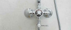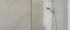 - ein elegantes Badezimmer mit bodenebener Dusche, Waschbecken und stilvollen Armaturen im viktorianischen Stil