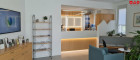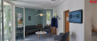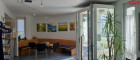 - Großzügiger Warteraum mit fest eingebautem Empfangstresen, ergänzt durch einen Plexiglasschutz für Hygiene und Sicherheit
