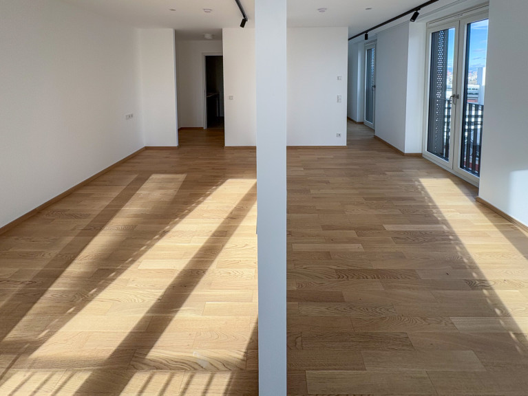 Die Wohnungen sind hochwertig, mit edlen Parkettböden, Tischlerküchen mit Miele-Geräten, bodentiefen Fenstern, Fußbodenheizung und Deckenkühlung ausgestattet.