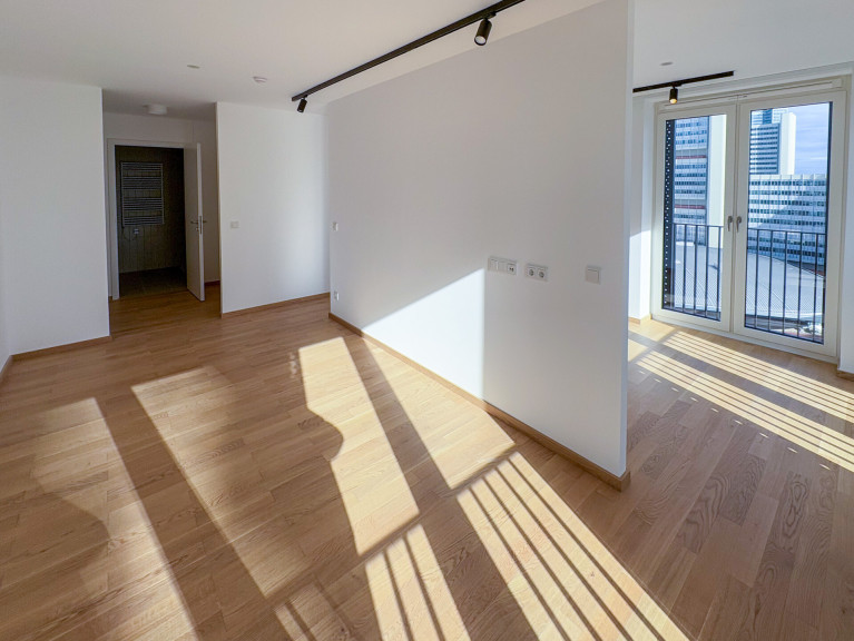 Erstbezug in den DC Flats – Smarte 1,5 Zimmer-Eckwohnung – zu mieten in 1220 Wien