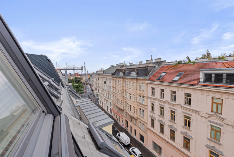 Quick facts: Währinger Straße I Einbahnstraße I Aumannplatz I Kutschkermarkt I Maisonette I Wohnzimmer mit Küche I Zimmer I Klimaanlage I Terrasse in den Innenhof I Lift I Kellerabteil I ideale Raumaufteilung