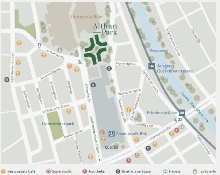 - Straßenbahnlinien D, 33, 100m zur Haltestelle Althanstraße