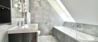 - Sanitärräume mit anthrazitgrauem Feinsteinzeug verfliest