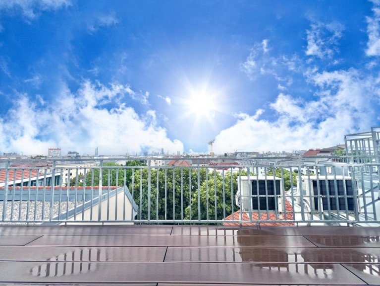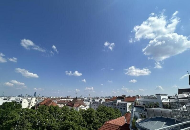 Diese ca. 135m² (inkl. gewichteter Terrassenflächen) große, lichtdurchflutete Dachgeschoßwohnung (BJ 2014) bietet auf 2 Ebenen Terrassenflächen mit traumhaftem Blick über Wien sowie folgende