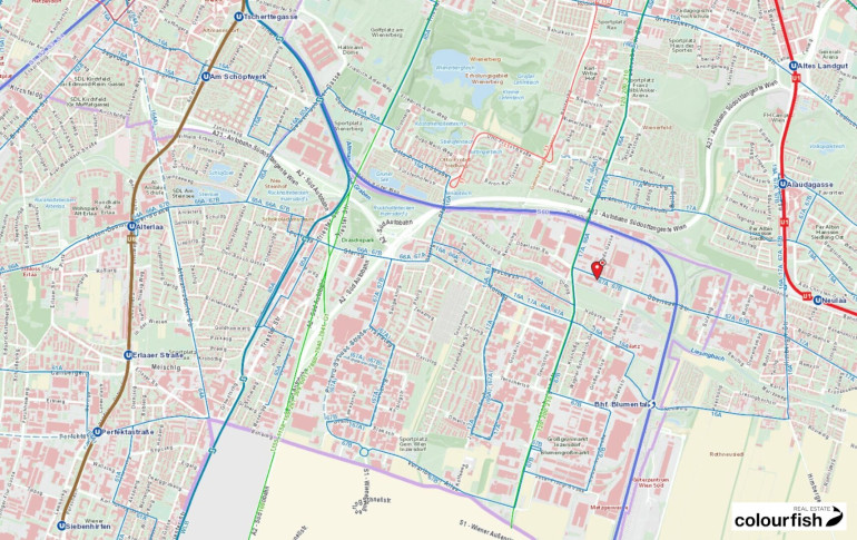 S-Bahn: Bahnhof Wien Blumental (ebenfalls gut durch Busse erreichbar)
