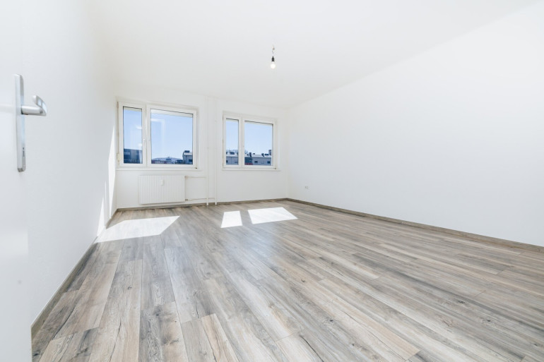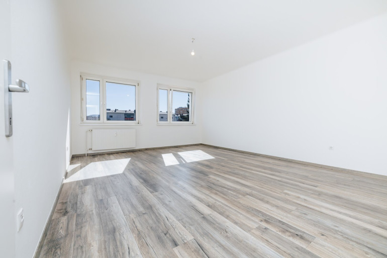 Mit drei optimal geschnittenen Zimmern und einem hellen Vorraum bietet diese Wohnung genügend Raum für Paare, Familien oder anspruchsvolle Singles, die Wert auf Großzügigkeit legen. - Lichtdurchfluteter Vorraum mit modernem Laminatboden