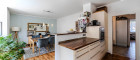 Im unteren Geschoss lädt eine offene Küche mit viel Platz für das Esszimmer zum Kochen und Beisammen sein ein. Auch das großzügige Wohnzimmer mit Kamin und Zugang zum Innenhofseitig gelegenen Balkon bietet reichlich Platz.