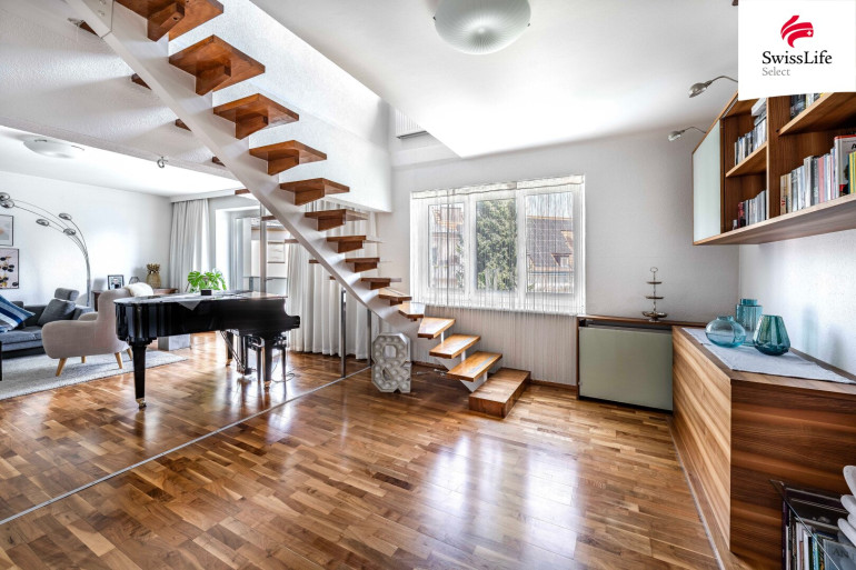 Die Wohnung liegt im 2.OG eines Mehrparteienhauses (kein Lift), sie erstreckt sich mit rund 172m² Wohnnutzfläche über zwei Ebenen und schafft mit ihrer offenen Raumaufteilung eine helle, einladende Atmosphäre.