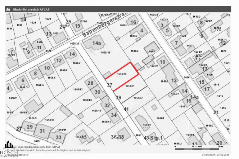 Die Bebauungsbestimmungen erlauben eine Bebauung mit Bauklasse I, II offen oder gekuppelt, bei einer Bebaubarkeit von 40 %. Das Grundstück ist im Grenzkataster eingetragen. Die Aufschließungsabgabe in Höhe von ca. € 25.000,-- müssen noch gesondert bezahlt werden.