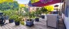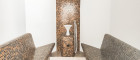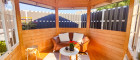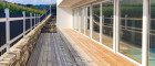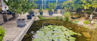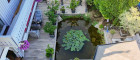 Die Freiflächen umfassen drei sonnige Terrassen, teils überdacht, sowie eine gepflegte Gartenlandschaft mit Teichen, Bachlauf und Wasserfall.