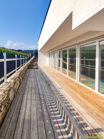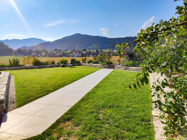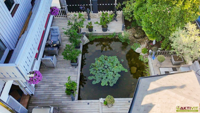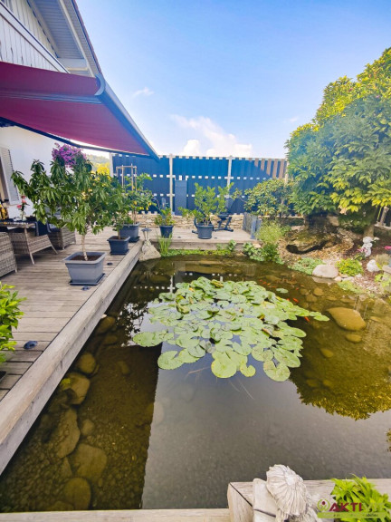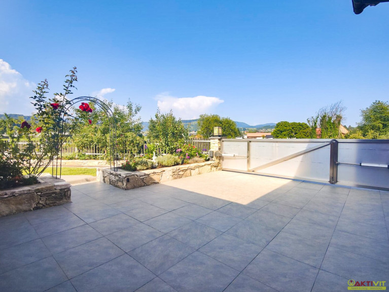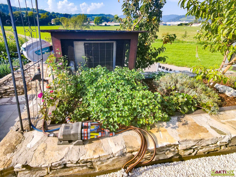 Eingebettet in eine ruhige Wohnlage am Stadtrand von Feldkirchen in Kärnten präsentiert sich dieses außergewöhnliche Einfamilienhaus als Symbiose aus Lebensqualität, Naturverbundenheit und hochwertiger Ausstattung. Auf rund 420 m² Wohnfläche erwarten Sie sieben Zimmer, ein großzügiger Wellnessbereich mit medizinischer Ausstattung sowie liebevoll gestaltete Garten- und Teichanlagen. Die Liegenschaft überzeugt durch durchdachte technische Details, biologisch-nachhaltige Bauweise und vollkommene Ruhe.