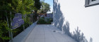 Terrasse mit robustem Feinsteinzeug (2 cm), im Splittbett verlegt