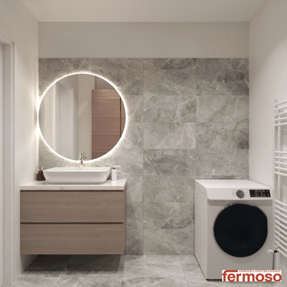 Großformatige Feinsteinzeugfliesen in Bad, WC, Vorraum und Abstellraum