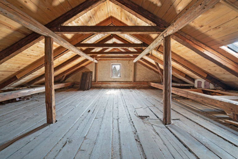 Großer Dachboden (ca. 125 m²): mit bestehenden Strom- und Wasserleitungen – Ausbau möglich