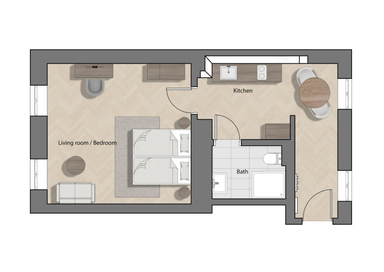 Die Einheiten mit Größen zwischen ca. 21 m² und 91 m² werden vollmöbliert verkauft. Die hochwertige Ausstattung umfasst alles – von der Einbauküche über Betten bis hin zu Fernseher und Kaffeelöffel – und ist optimal auf die Kurzzeitvermietung ausgerichtet.