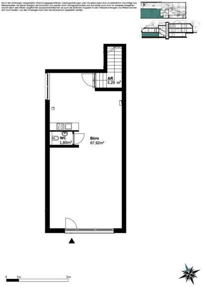 Das Büro Top 1 mit ca. 75,01 m² Nutzfläche gliedert sich wie folgt: