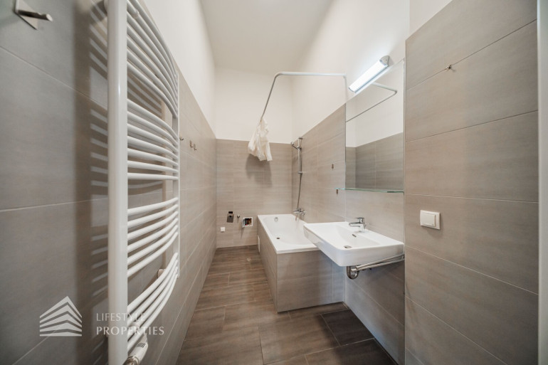 Sie betreten die Wohnung und befinden sich im Vorraum, gerade durch gelangen Sie in das geräumige Wohnzimmer. Das Schlafzimmer ist über den Salon begehbar. Das Bad ist mit einer Badewanne, einem Handwaschbecken, einem Waschmaschinenanschluss und einem Handtuchtrockner ausgestattet. Die Küche und das separate WC sind ebenfalls vom Vorraum erreichbar. Die Wohnräume sind mit schönem Parkett ausgestattet und die Nassräume sind verfliest.