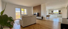 Über das sehr helle Wohn- Esszimmer gelangt man auf die ca.35m² Terrasse und Garten.