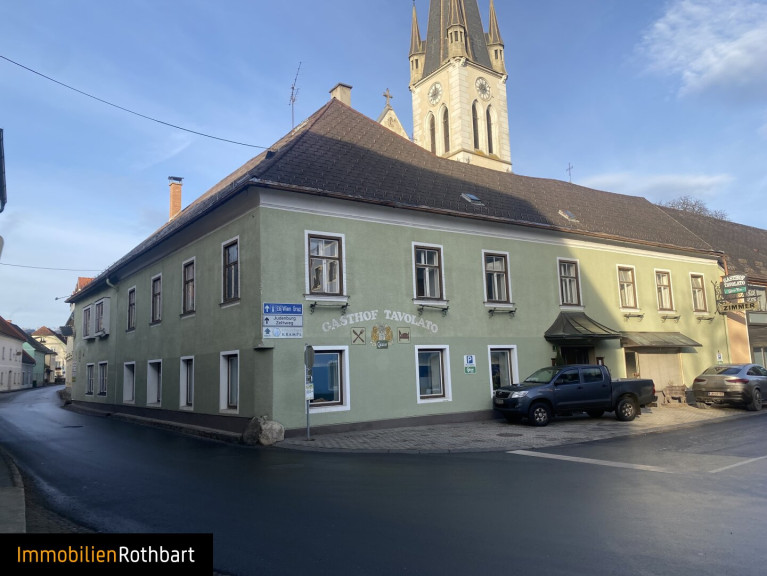 Das Haus besticht durch seine gute Lage im Zentrum von Weißkirchen. Das Gasthaus befindet sich im EG, hat insgesamt ca. 385 m² Geschäftsfläche und bietet ca. 120 Sitzplätze. Zusätzlich gibt es einen Innenhof mit ca. 50 m² und eine Garage mit ca. 20 m². Direkt vor dem Haus gibt es Parkmöglichkeiten.