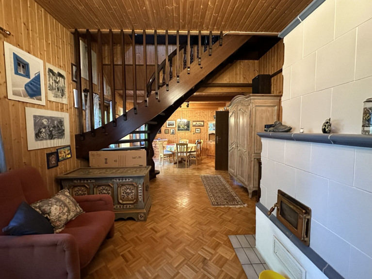 Beheizt wird das Haus über einen zweizügigen Kamin mit zwei Holzbrandöfen, ergänzt durch Elektroheizungen. Die DAN-Küche ist vollständig ausgestattet und bietet sämtliche Geräte des täglichen Bedarfs (Herd mit Backrohr, Geschirrspüler, Kühlschrank). Zusätzlich befindet sich im Außenbereich eine Werkstatthütte, die viel Stauraum für Holz oder Gartengeräte bietet.