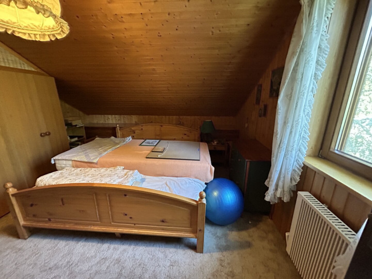 Im Erdgeschoss befinden sich das Wohnzimmer, eine ausgestattete Küche, ein Badezimmer mit WC sowie eine Sauna – ideal für entspannte Stunden im eigenen Zuhause. Im Obergeschoss befinden sich ein Schlafzimmer sowie ein weiterer Sanitärbereich mit Waschbecken, WC und Bidet. Ein Balkon rundet diesen Bereich ab und bietet einen angenehmen Ausblick ins Grüne.