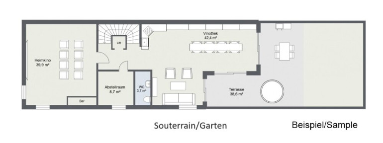Was die einzelnen Wohnbereiche betrifft, so wurde in der Planung ebenfalls darauf geachtet, dass es genug Platz für Fitnessraum, Sauna, Wellness- Bereich, Pool und Weinkeller gibt.