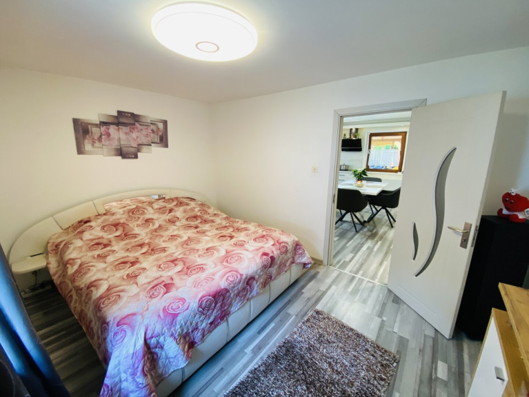 Die Raumaufteilung gliedert sich wie folgt: Im Erdgeschoss finden Sie eine große Wohnküche, ein Schlafzimmer, ein weiteres Zimmer (ideal als Kinderzimmer oder Büro) sowie einen praktischen Abstellraum. Im Obergeschoss stehen zwei weitere Schlafzimmer zur Verfügung, dazu ein modernes Badezimmer und ein heller Vorraum, der als kleine Sitz- oder Spielzone genutzt werden kann.