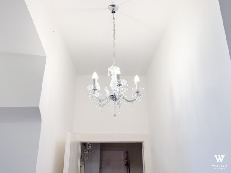 Besondere Details wie die Kombination aus traditionellen Kronleuchtern und modernen Spots schaffen ein stimmungsvolles Ambiente. Die hohen Türen mit hochwertigen Messingbeschlägen und die Helligkeit der südseitig ausgerichteten Räume verstärken die einladende Wohnatmosphäre. Eine absolute Seltenheit für Altbauwohnungen: Die Wohnung ist mit einer Klimaanlage ausgestattet und bietet damit auch an heißen Sommertagen höchsten Komfort.