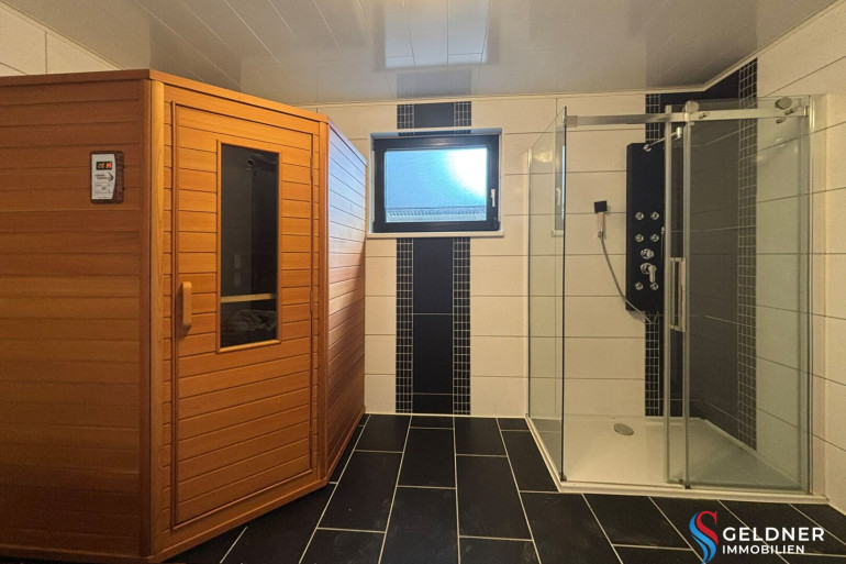 Gas, Zentralheizung, Bad mit Fenster, Badewanne, Dusche, Garage, Alarmanlage, Sauna