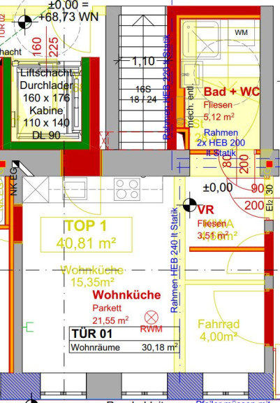 Fliesen, Parkett, Fußbodenheizung, Personenaufzug, Dusche