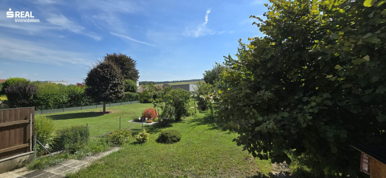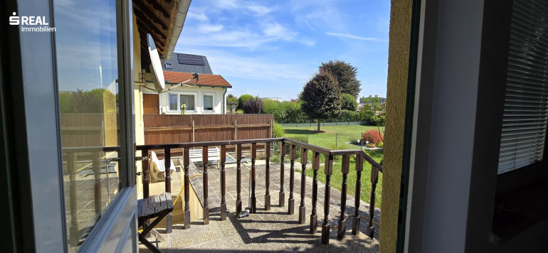Aufgang in den Oberstock und Ausgang auf die Terrasse samt Garten.