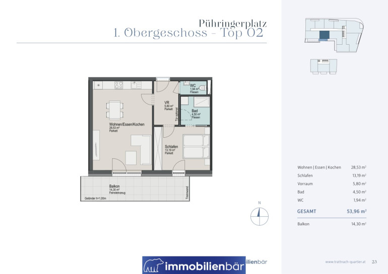 Trattnach.Quartier - 2 Zimmerwohnung mit südseitigen Balkon - Top 2