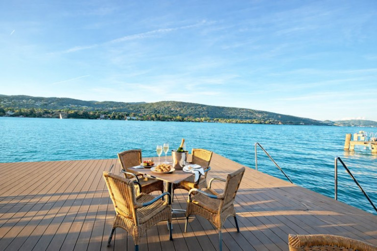 Hier verbinden sich Natur und Luxus auf einzigartige Weise: Im Osten umgibt Sie der Duft des Waldes, vor Ihnen glitzert das karibikblaue Wasser des Sees und im Westen liegt die lebendige Veldener Bucht – ein Ambiente, das seinesgleichen sucht.