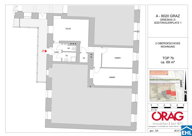 Die Wohnung in der Grieskai 2/7b überzeugt mit ihrer großzügigen, durchdachten Raumaufteilung: Zwei getrennt begehbare Zimmer bieten vielfältige Nutzungsmöglichkeiten und ermöglichen Ihren Einrichtungsideen grenzenlose Möglichkeiten. Eine separate, großzügige Küche, ein Badezimmer mit Dusche, eine separate Toilette sowie ein praktischer Abstellraum und ein geräumiger Vorraum sorgen für optimalen Wohnkomfort.