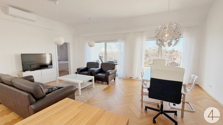 Parkett, Fliesen, Fußbodenheizung, Wohnküche / offene Küche, Personenaufzug, Westbalkon, Badewanne, Garage