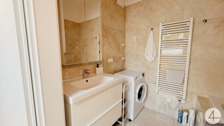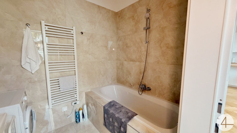 - Badezimmer mit Badewanne, Handwaschbecken und Waschmaschinenanschluss 4,17m2