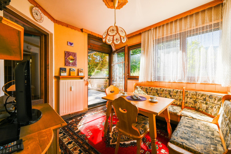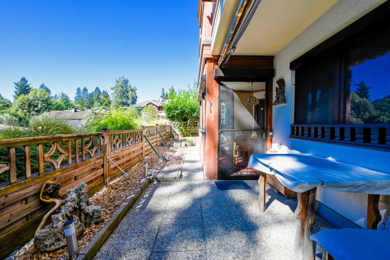 Besonders hervorzuheben ist die großzügige Terrasse, die nach Südwesten ausgerichtet ist. Hier können Sie die Sonne von morgens bis abends genießen und den atemberaubenden Ausblick auf die umliegenden Berge und die grüne Landschaft bewundern. Ob beim Frühstück im Freien oder bei einem Glas Wein am Abend – Ihr neuer Rückzugsort wird zum Lieblingsplatz im Freien. Ein besonderer Platz ist der beheizte Wintergarten, somit steht auch im Winter nichts im Wege, diesen hellen Raum zu nutzen