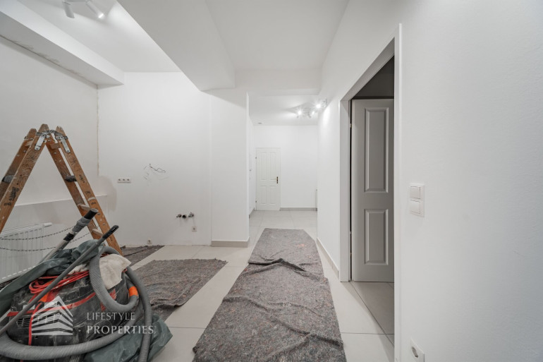 Sie betreten die Wohnung und befinden sich im Vorraum, geradeaus befindet sich das Wohnzimmer und eines der Schlafzimmer. Beim Vorraum rechts befindet sich die Küche und der Essbereich. Von hier gelangen Sie auch in die anderen zwei Zimmer. Das Bad ist mit einer Wanne, einem Waschbecken, einem Handtuchtrockner und einem Waschmaschinenanschluss ausgestattet. Die separate Toilette befindet sich im Vorraum.