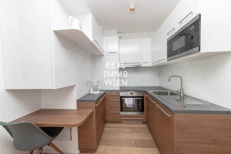 - Voll Ausgestatte Küche inkl. Kühlschrank, Gefrierschrank, Induktionsceranfeld, Dunstabzug, Backrohr, Mikrowelle und Geschirrspüler