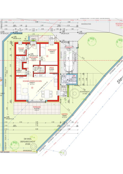 - Der Eigengarten wird vom Bauträger mit dem Mutterboden planiert, humusiert und angesät