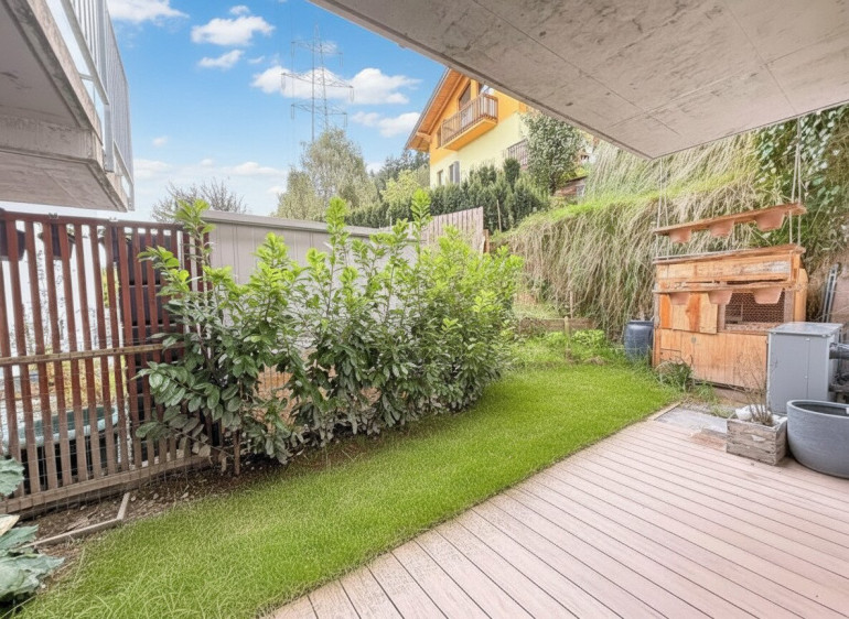 Ein besonderes Highlight sind die zwei Gärten mit jeweils einer Terrasse, die viel Platz zum Entspannen oder für gesellige Stunden im Freien bieten. Der westlich ausgerichtete Garten ist stufenartig angelegt und fügt sich harmonisch in das Landschaftsbild ein.