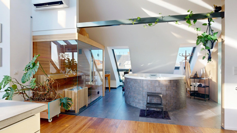 Dachgeschoss-Maisonette mit Loft-Charakter, Wellness-Oase & Weitblick