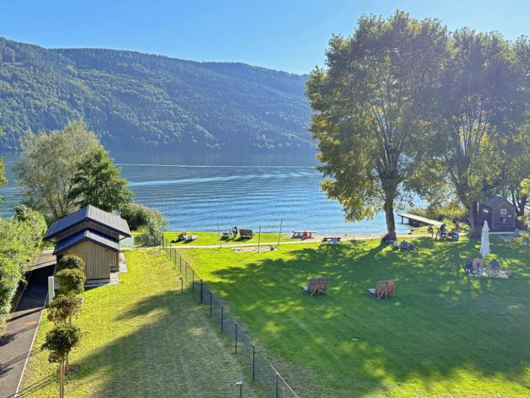Die großzügige Liegewiese und der direkte Zugang zum See machen diese Wohnanlage zu einem echten Unikat. Beginnen Sie den Tag mit einem Sprung ins kühle Nass, genießen Sie sonnige Stunden in absoluter Privatsphäre und lassen Sie die Abende stilvoll ausklingen.