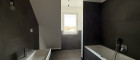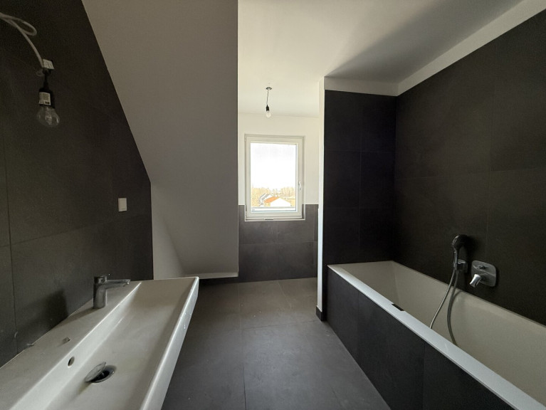 - Badezimmer mit Badewanne, Dusche, Doppelhandwaschbecken und WC