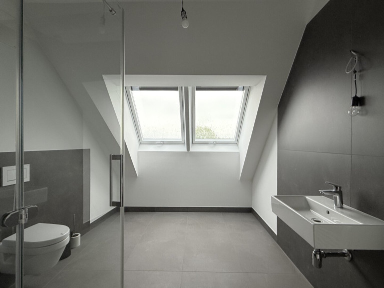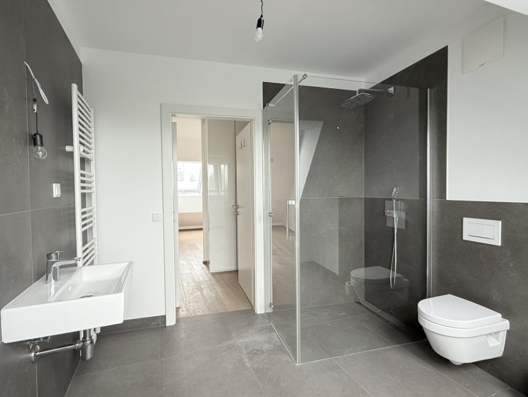 - Masterbedroom (ca. 19 m2) mit eigenem Schrankraum und Badezimmer mit Doppelhandwaschbecken, Dusche und WC